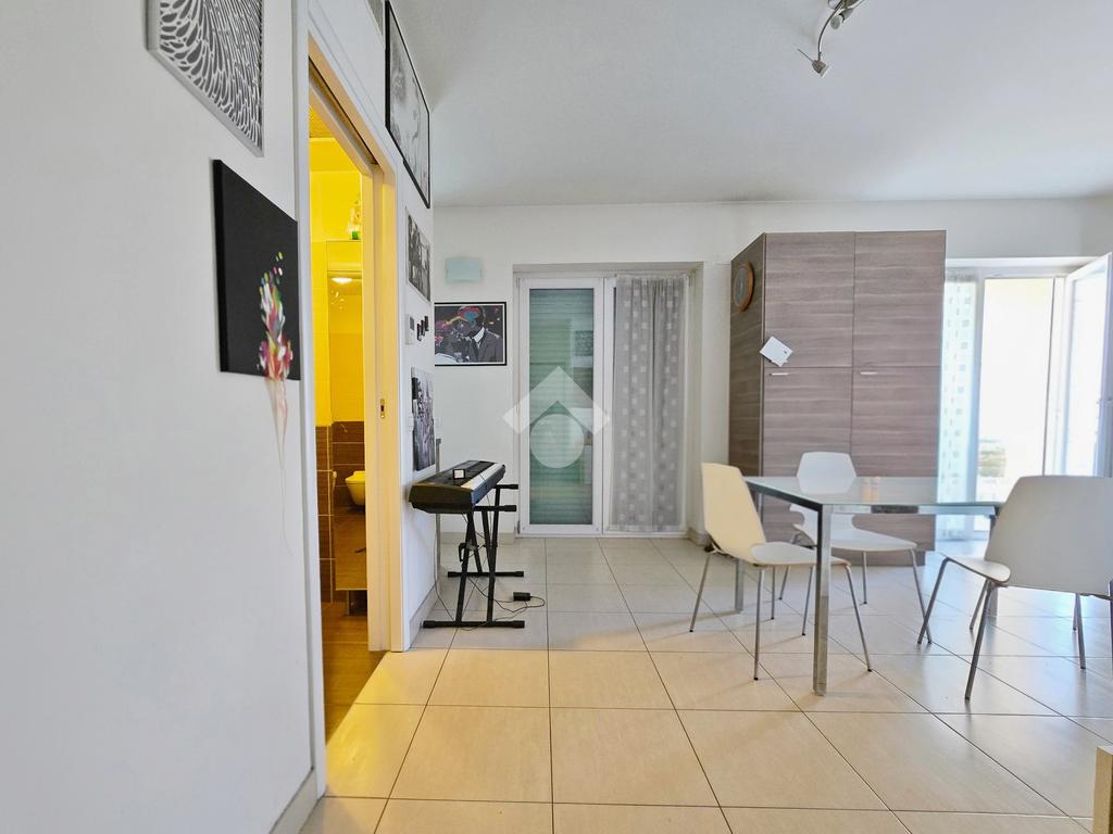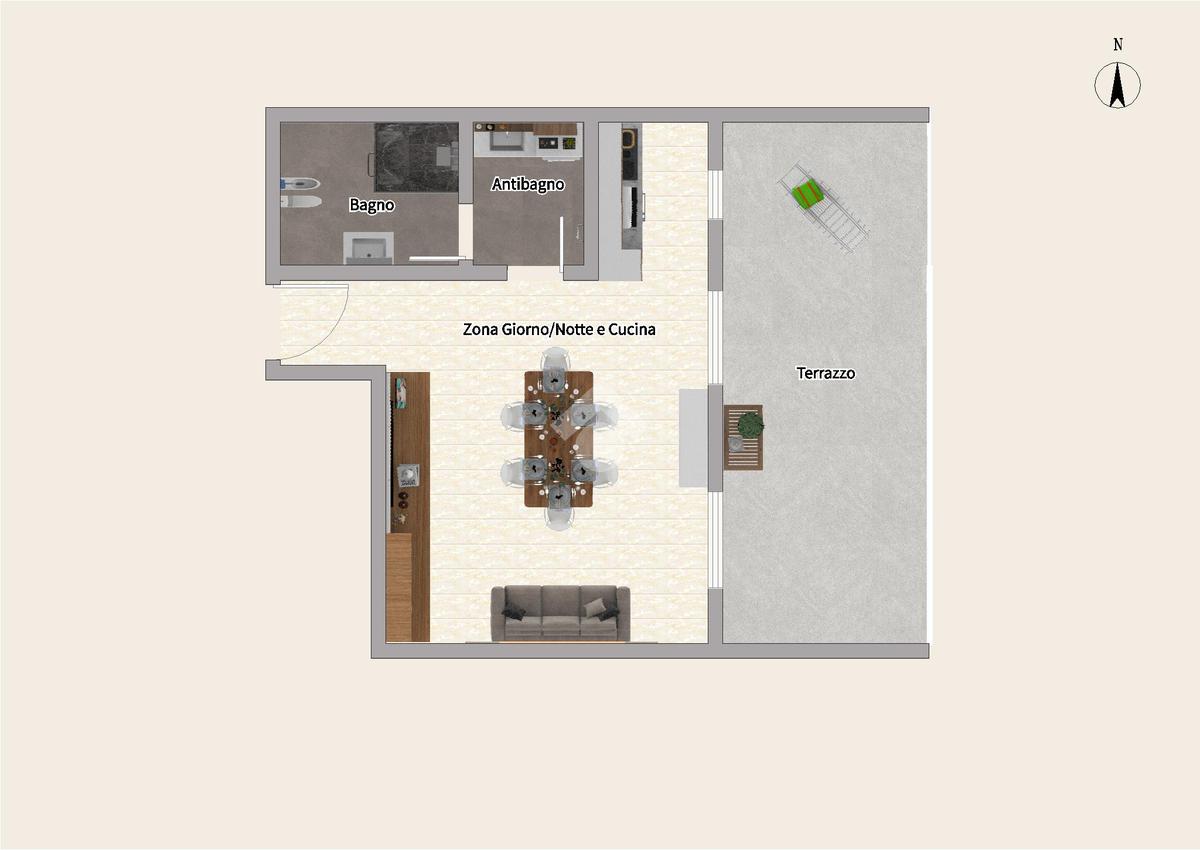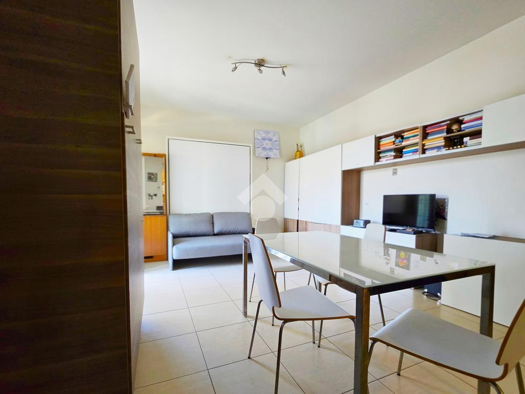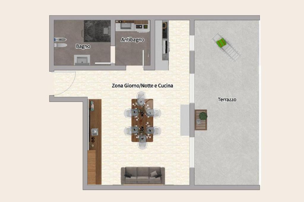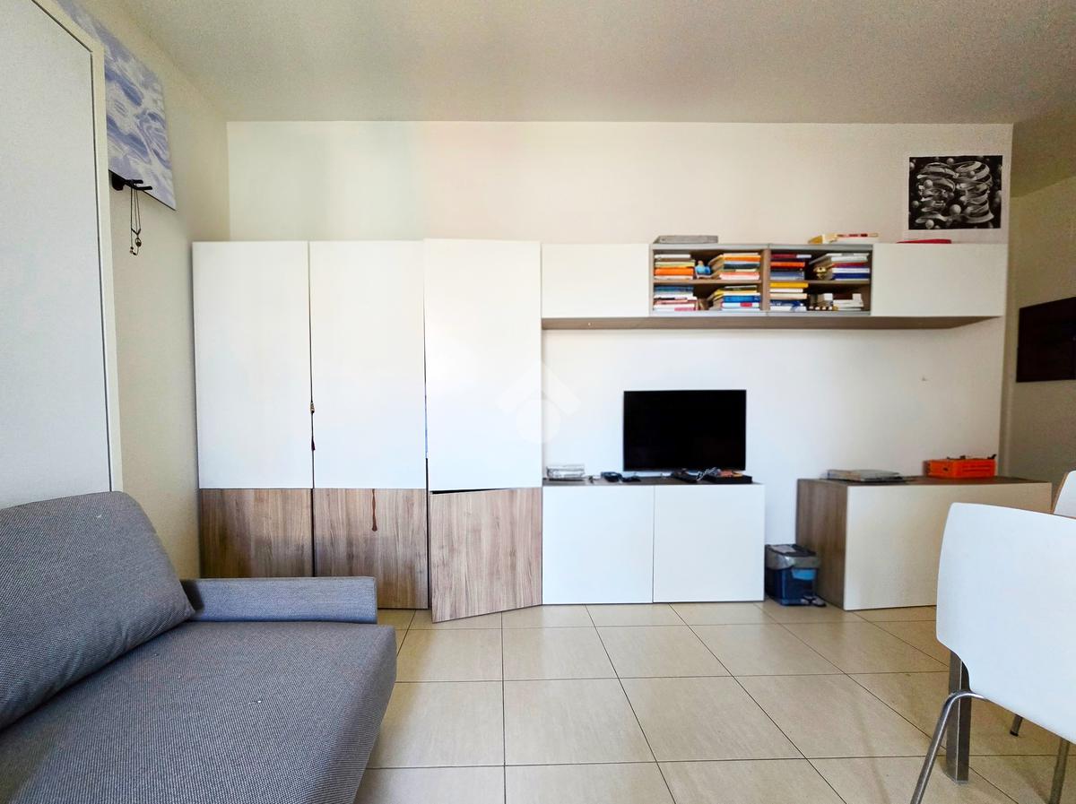 In stabile di recente costruzione del 2012, con ascensore, giardino condominiale, videocitofono e portineria mezza giornata, proponiamo in locazione al 4° piano, ampio monolocale di 45mq, così composto: Ingresso, Zona Giorno/Notte con Cucina a vista, Antibagno, Bagno cieco con doccia e Terrazzo di 15mq.