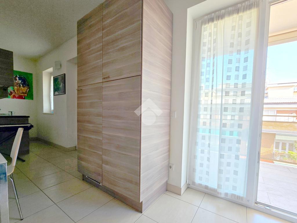 L'immobile si presenta in ottimo stato, recentemente ristrutturato, e presenta come finiture: pavimentazione in ceramica in continuità su tutta la superficie, infissi in PVC/doppio vetro a taglio termico, porta blindata, riscaldamento e raffrescamento centralizzati, nell'appartamento non è presente gas.